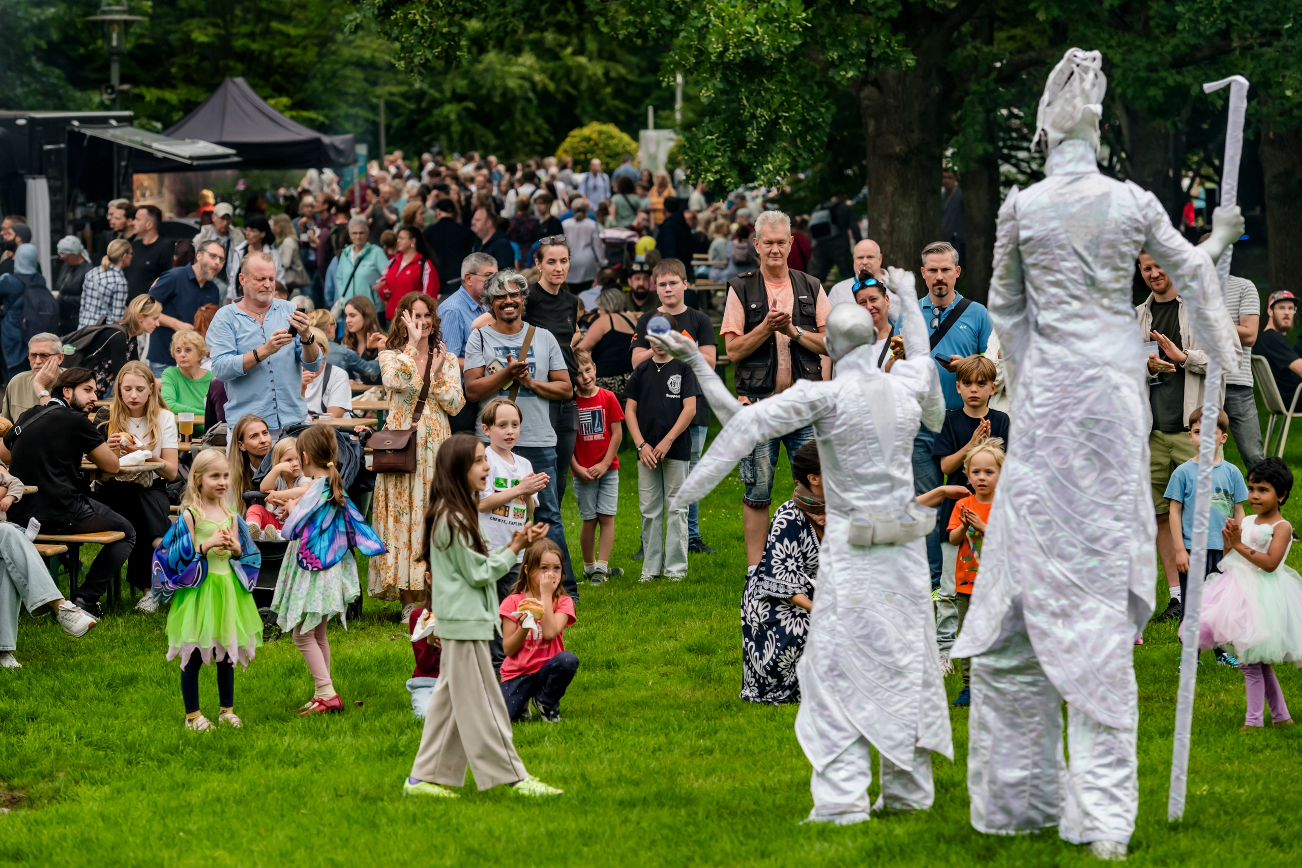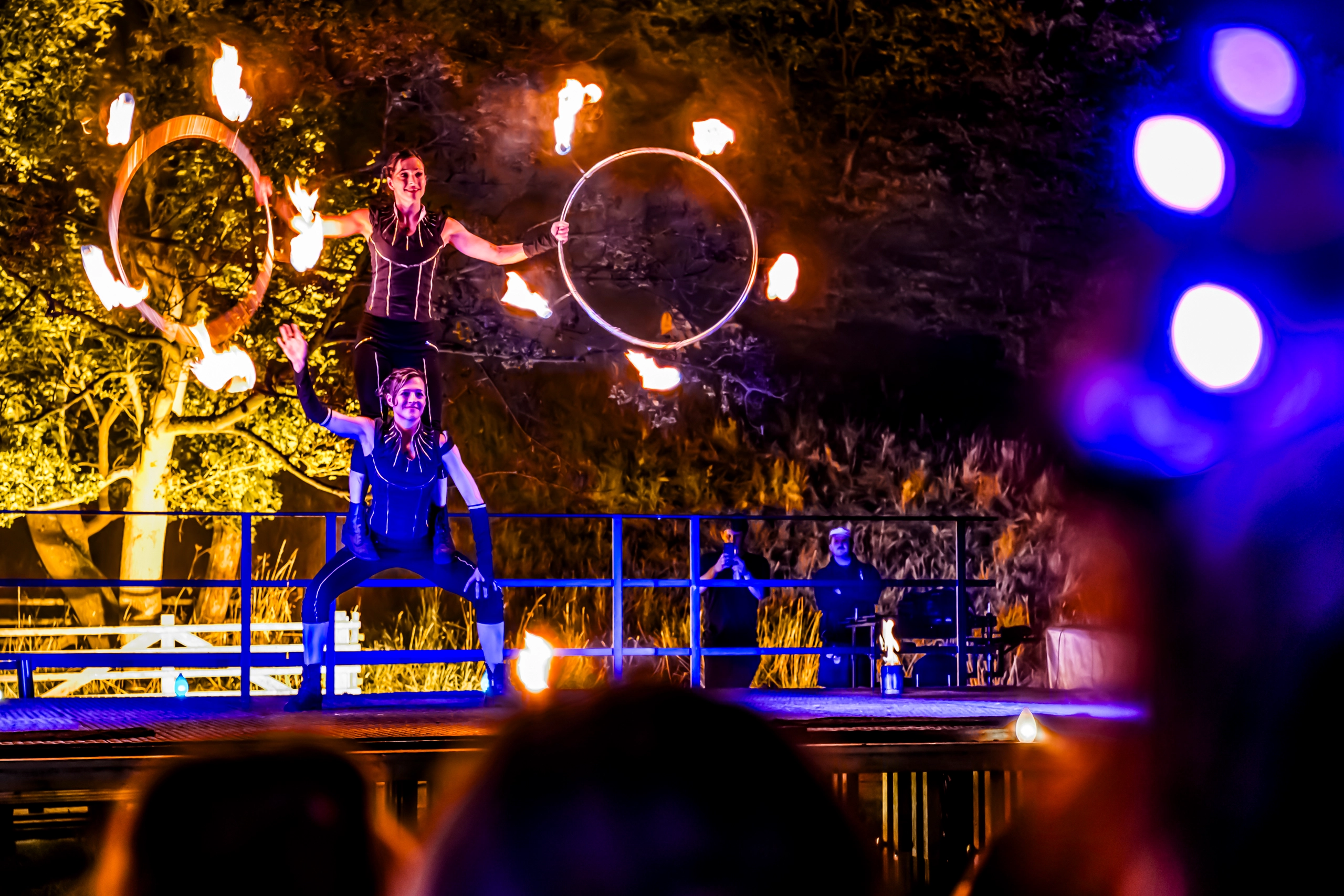 Über 100 Artist:innen und Künstler:innen warten darauf, Sie mit atemberaubenden Performances zu begeistern. Feuerkünstler:innen lassen Flammen durch die Nacht tanzen, Akrobat:innen schweben scheinbar schwerelos durch die Dunkelheit und eindrucksvolle Walking Acts tauchen aus dem Schatten auf. An zahlreichen Spielstätten auf den Wegen, Wiesen und Plätzen des Gartens verschmelzen Bewegung, Licht und Körperkunst zu einem einzigartigen Gesamterlebnis voller Überraschungen.